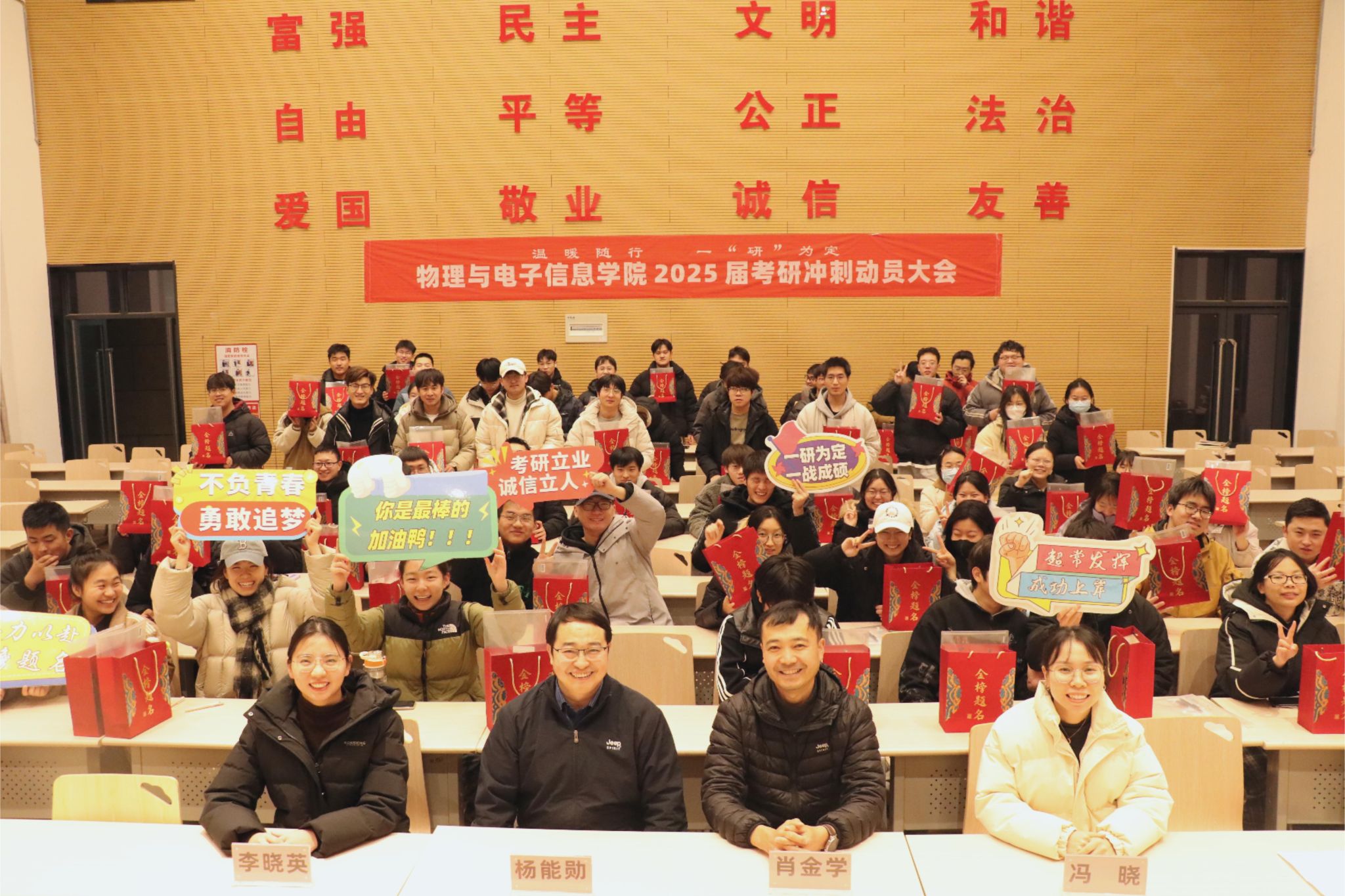 在2025年全国硕士研究生招生考试即将到来之际,为坚定考研员工的信心,缓解备考压力,激发前进动力,12月18日下午,​太阳集团tyc33455cc于建工报告厅召开2025年考研冲刺动员大会。公司党委副书记肖金学、副经理杨能勋、毕业班辅导员及全体考研学子参加大会。大会由辅导员冯晓主持。