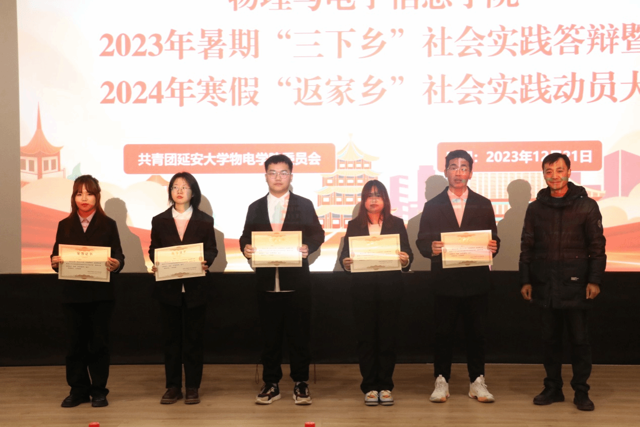 经过前期初评,共有21支实践团队入围评优答辩会。答辩现场,各实践团队代表按照抽签顺序依次上台,从实践活动背景、过程、特色、成果和感悟等方面进行汇报答辩。同学们精彩的汇报展示了公司暑期社会实践活动的丰硕成果,体现出物电学子积极服务群众,奉献社会的良好精神风貌。经过评审汇总,“情系童心·与爱‘童’行”实践团等5个团队荣获示范团队,“追寻红色足迹·传承延安精神” 实践团等5个团队荣获优秀团队。各评委老师分别为获奖团队颁发了证书。院团委书记袁松岩对2023年暑期“三下乡”社会实践工作做了总结,并就2024年寒假“返家乡”社会实践工作做了动员和安排。