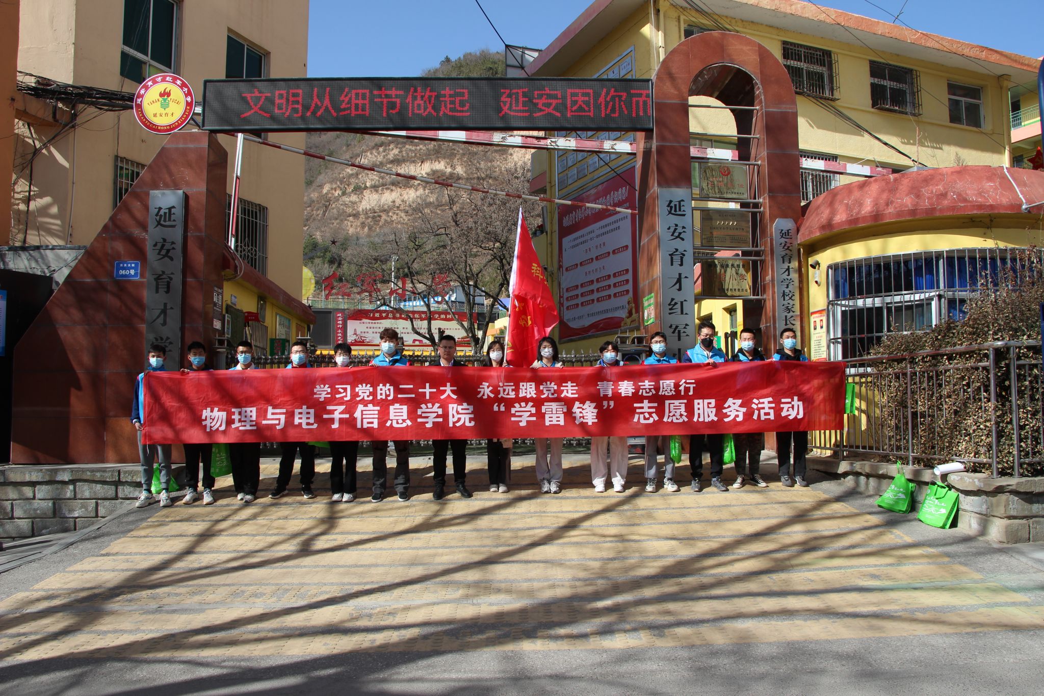 活动结束后,公司科技先锋队的志愿者们前往延安市育才红军小学、tyc33455cc附属中学等公司开展了“学习党的二十大、永远跟党走、青春志愿行”志愿服务宣传活动。重点宣传了雷锋同志的先进事迹、创建国家食品安全城市的重要意义、林业科技知识等内容。