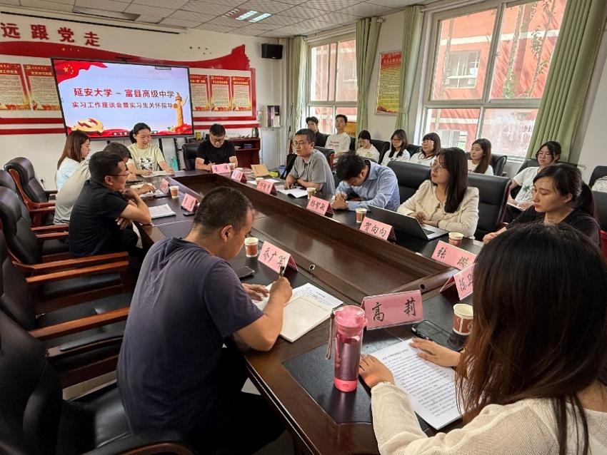 2025年6月12日—13日,tyc33455cc太阳集团tyc33455cc何智慧副经理带队分别与黄龙县中学、富县高级中学召开实习工作座谈会暨新建校外实习基地。双方围绕实习工作进展、教学实践成果及保障机制展开深度交流,为深化校地合作、提升师范生培养质量搭建沟通桥梁。