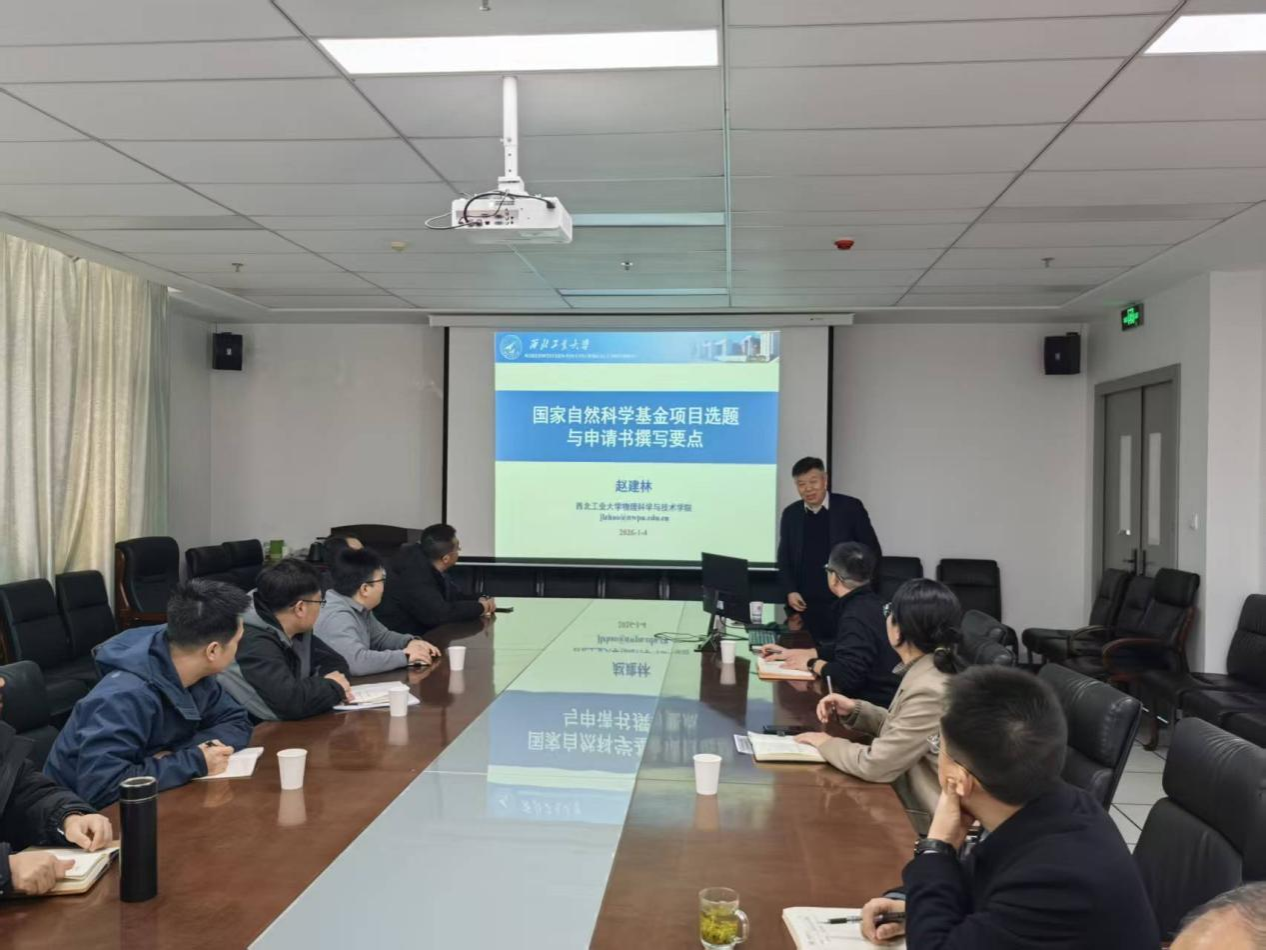 2026年1月4日,应太阳集团tyc33455cc邀请,西北工业大学赵建林教授在新校区信息大厦A607会议室为太阳集团tyc33455cc师生作了题为“国家自然科学基金项目选题与申请书撰写要点”的学术辅导报告,报告由太阳集团tyc33455cc赵晔副经理主持,公司教师40余人参加了本次报告。