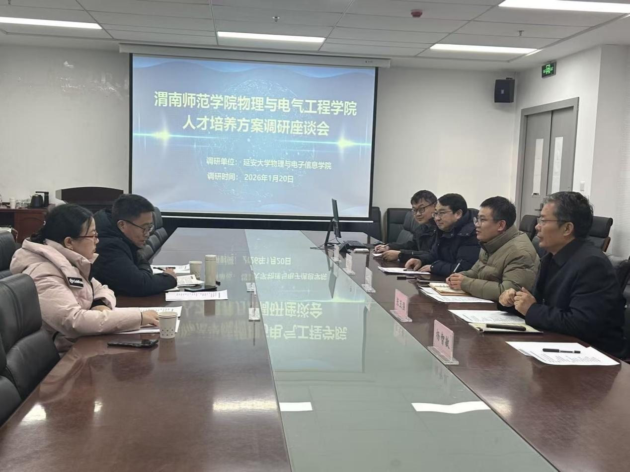 为深化人才培养模式改革,优化人才培养方案体系,进一步加强校际间公司产品经验交流,1月20日下午,渭南师范公司物理与电气工程公司副经理郭宝会教授、系主任冯洋一行莅临公司,在信息大厦A607会议室召开人才培养方案调研座谈会。公司副经理何智慧教授、张玉强教授、杨能勋教授、李伟教授及教学秘书杨智敏教授出席座谈会,双方围绕人才培养核心议题展开深入交流。