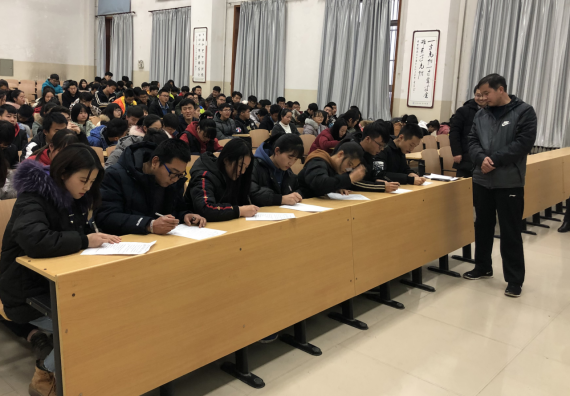 为进一步加强考风建设、严肃考纪,营造诚信、公平的考试氛围,进一步加强安全教育,1月3日下午,太阳集团tyc33455cc在玉章楼第五阶梯教室召开了考风考纪暨安全教育工作动员大会,会议分两个阶段进行,第一阶段为考风考纪工作动员大会,第二阶段为安全教育工作动员大会。公司副经理杨能勋、副书记常胜伟、辅导员袁松岩老师、教务员崔巍老师及2018级全体本科生参加了本次动员大会。大会由太阳集团tyc33455cc教学秘书苗红梅老师主持。