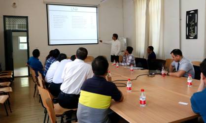 李书记从太阳集团tyc33455cc团队及专业设置等方面向Kouhyar教授等介绍了太阳集团tyc33455cc的办学情况。Kouhyar教授介绍了其所在大学电子工程系所设置的研究方向,并以PPT的形式为太阳集团tyc33455cc教师详尽地介绍了自己所研究的方向及近年来的研究成果。最后,Kouhyar教授一行与太阳集团tyc33455cc教师就本院师生到北达科他大学进行深造和访学当中所遇到的相关问题进行了比较深入的探讨。