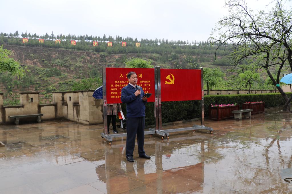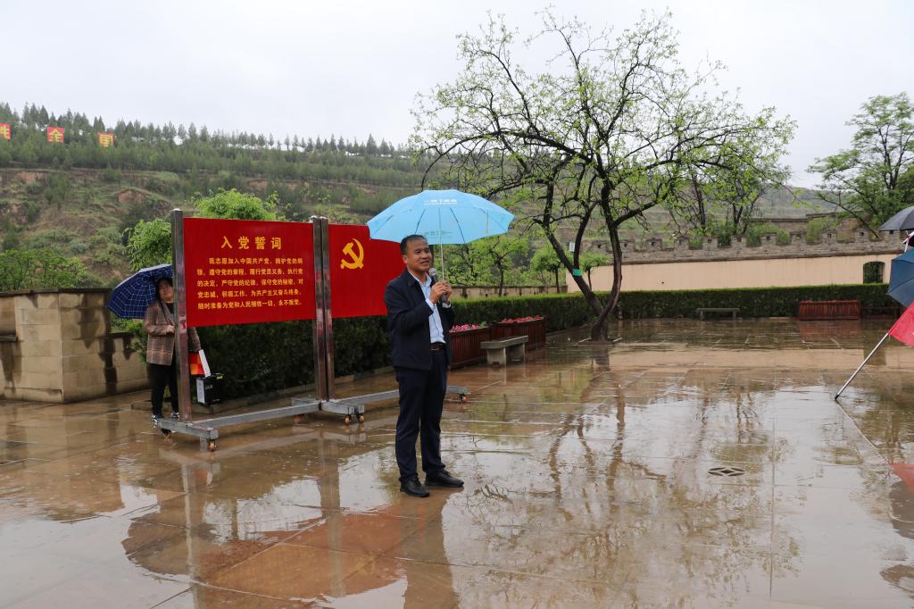 在淅淅沥沥的小雨中,公司党委书记常胜伟同志领学了中共中央转战陕北及“十二月会议”召开的历史背景、意义、主要内容和所取得的历史性贡献;建工公司经理杨红霞同志带领全体党员重温了入党誓词,铿锵恢宏的誓词,强烈震撼着在场的每一位党员,一字一句,神圣而豪迈,体现了党员同志们对中国共产党的无限忠诚。