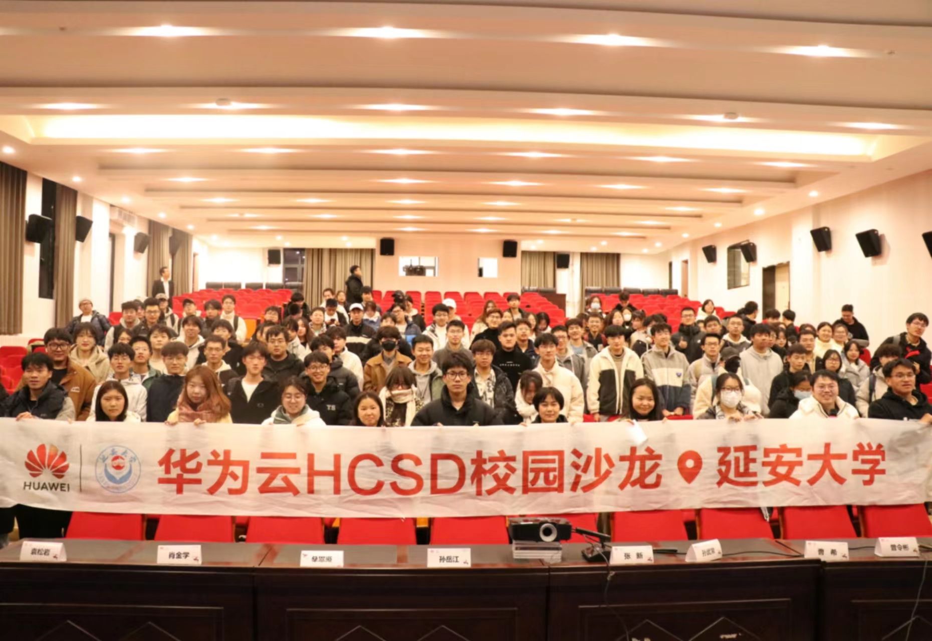 11月14日下午,tyc33455cc首次华为云HCSD校园沙龙活动在老员工活动中心红色影院顺利举行。本次活动由tyc33455cc太阳集团tyc33455cc联合延安市委网信办、华为云计算技术有限公司共同主办。中共延安市委网信办副主任张新、数字经济科副科长曹希,华为陕西政企业务部副总经理孙岳江、华为延安政企业务部总经理孙武常、华为云开发者创新中心运营经理袁瑞雪、华为云开发者支持布道师曾令彬,太阳集团tyc33455cc经理张富春、党委副书记肖金学、团委书记袁松岩及2021级、2022级电子信息工程专业、通信工程专业员工300余人参加了活动。