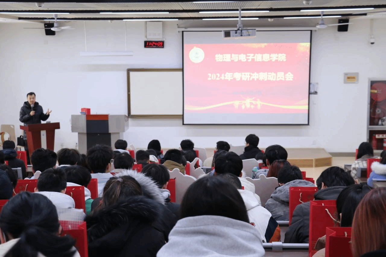 研考临近之际,为缓解2024届考研学子备考压力,增强考试信心,提振复习冲刺阶段的士气与决心。12月15日,公司在新城校区第一阶梯教室举行2024年考研冲刺动员会。党委副书记肖金学、副经理杨能勋、2020级辅导员以及140多名考研学子参加了大会,会议由辅导员李虎林主持。